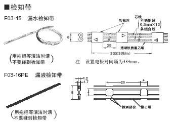 F03-15/-16PE F03-15/-16PE 检知带 F03-15 /漏水检知带(用拖把等清洁时请不要碰到检知带) F03--16PE漏液检知带(用拖把等清洁时请不要碰到检知带) |